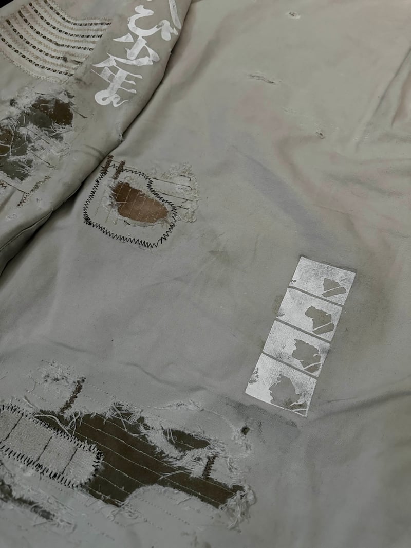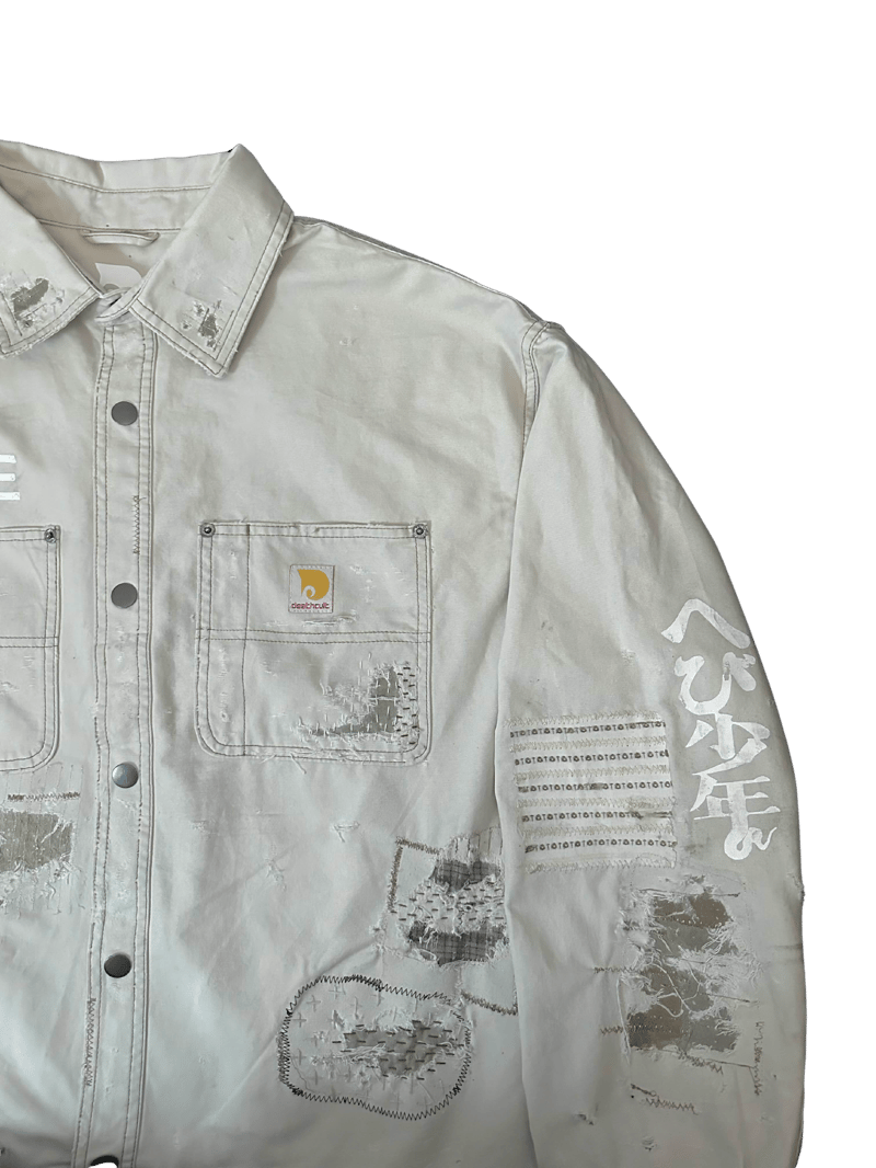 One of a kind distressed cotton overshirt/shacket